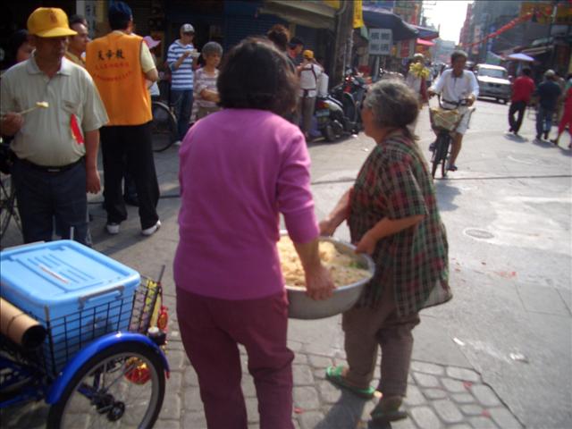 上圖是,你一路上都可以看到很多人在弄素菜給大家吃!