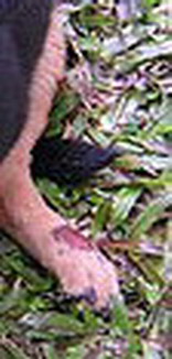 那天要出門去吃東西時,看著路上有一條很長很長的血跡,很可怕,我順著過去。