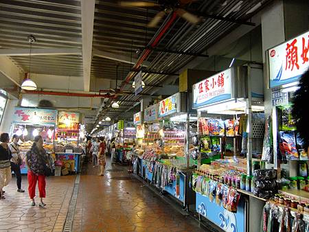 在漁市裡,聽到有攤販在叫:帥哥吃一下,帥哥看一下。