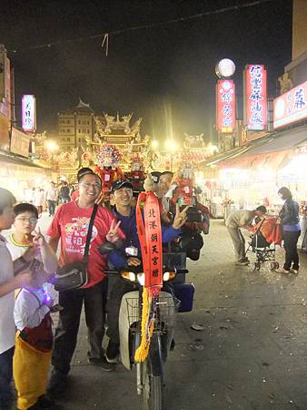 (媽祖離開北港準備去做客前的大合照,大家把媽祖舉高高,媽祖萬歲!)